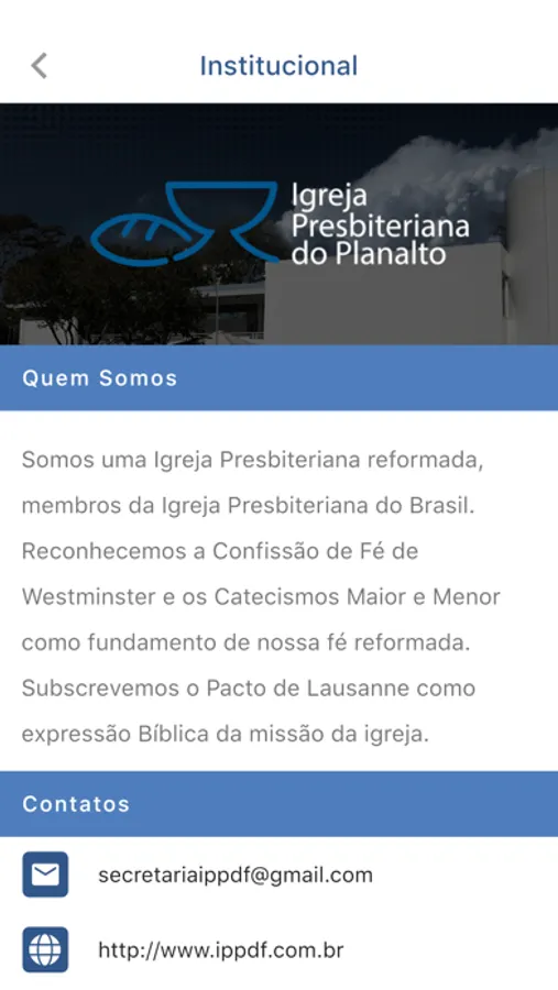 Seja muito bem-vindo ao aplicativo da IPP (Igreja Presbiteriana do Planalto). Aqui você pode conhecer mais sobre nossa comunidade, suas programações, boletins, notícias, estudos etc.