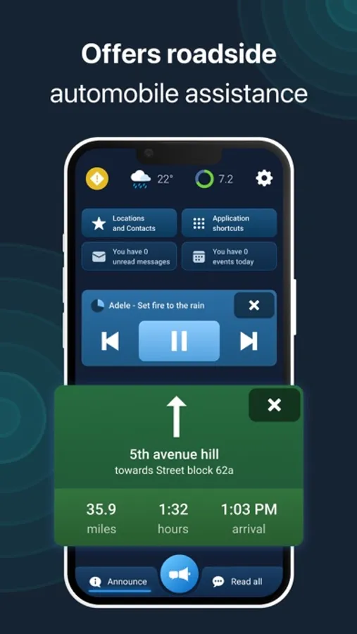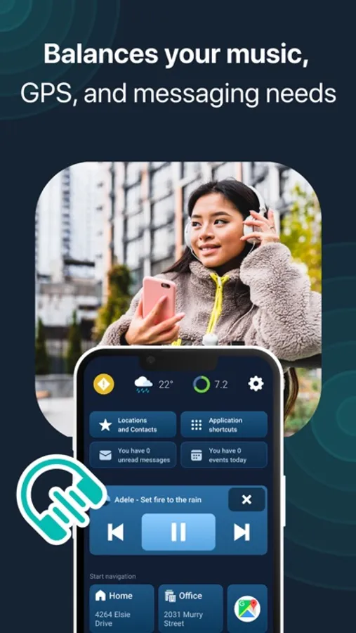 • Easily toggle between ping, your music, and GPS navigation with just a few taps on your phone without ever interrupting your entertainment or navigation.