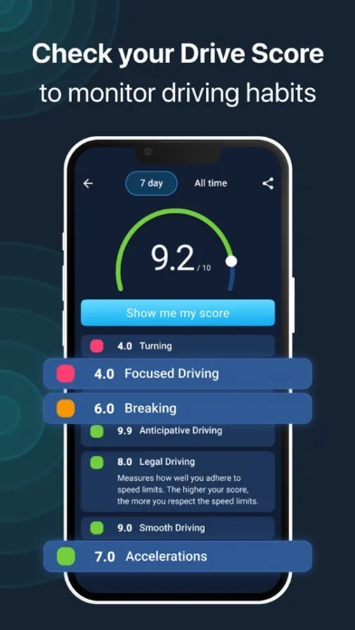 • Improve your driving safety with ping's Drive Score, which tracks your breaking and acceleration accuracy, speed limit adherence, smoothness of driving, level of focus, and turning habits.