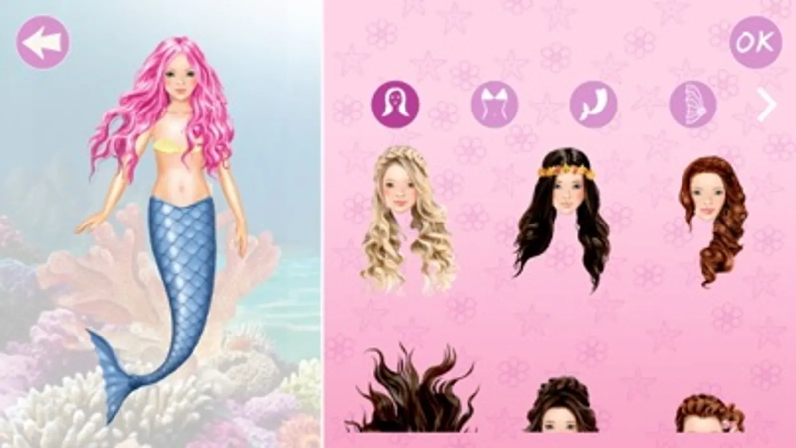 With this app you have endless possibilities to assemble your own mermaid, unicorn, elf or hippocampus in dreamlike environments, to clothe and equip with many details us accessories.