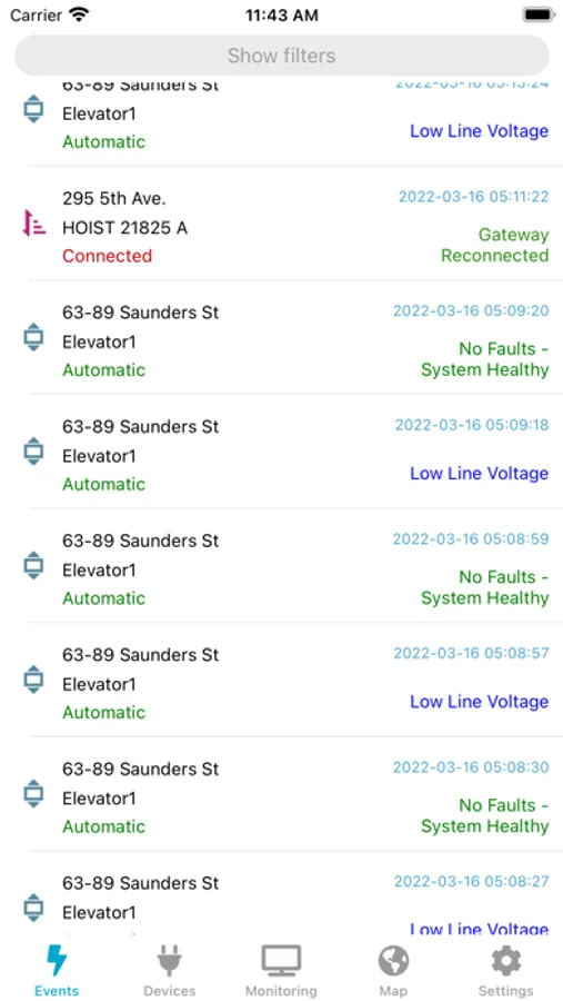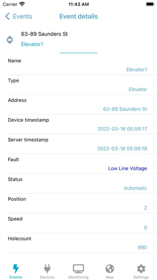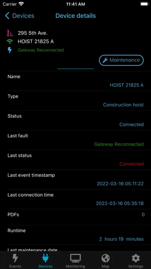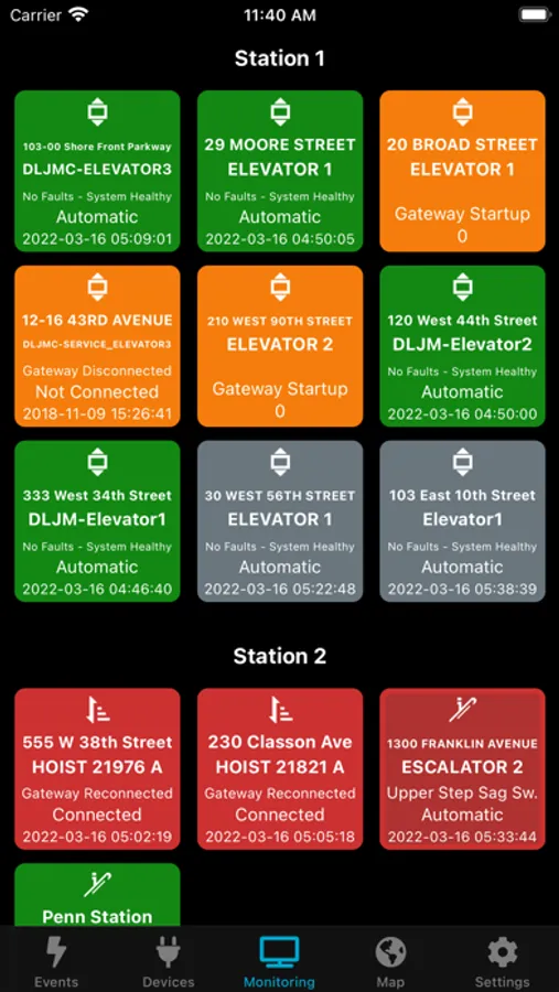 Cloud Monitoring mobile application reports user location, helping optimized dispatching of service mechanics in case of repairs.