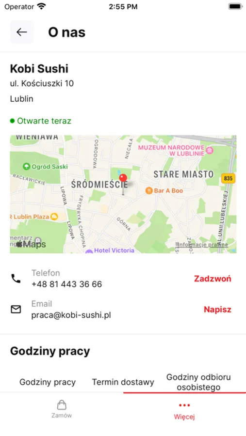 - aktualne menu i promocje