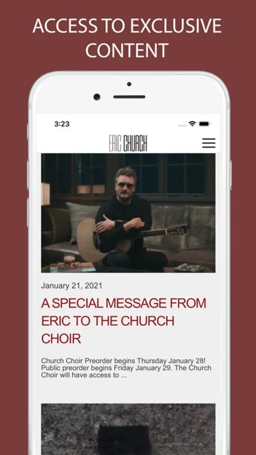 Welcome to the Eric Church App - the community for fans to connect with each other and enhance their experience all year round! Gain exclusive access to photos, videos, and BTS content as Eric travels across the country on tour - and more!