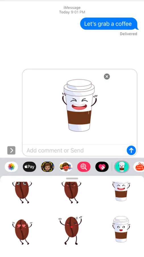 Express yourself with cute imagery that you can place anywhere in your messages.