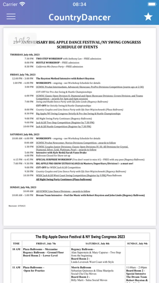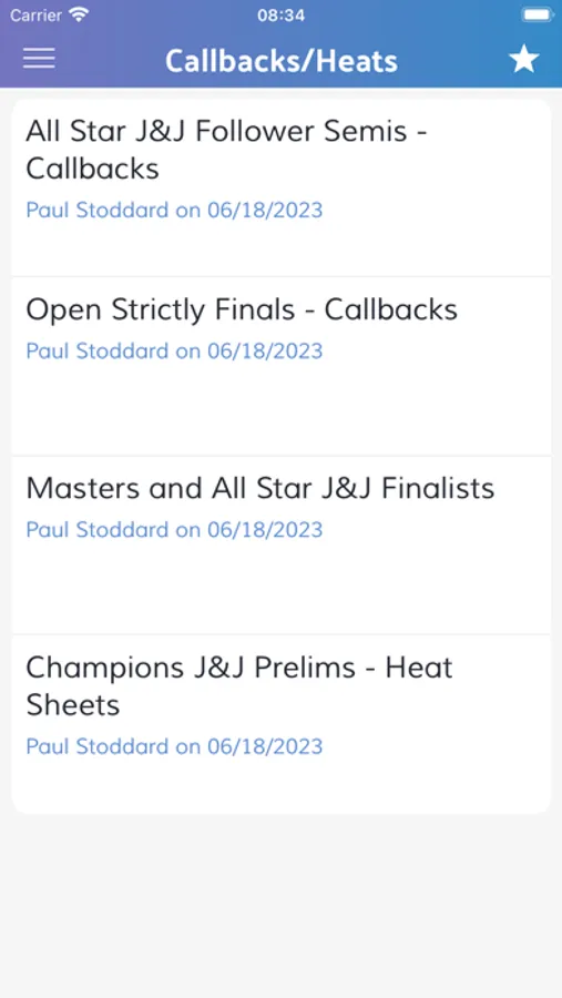 This app provides timely competitor and staff updates throughout the country dance event weekend, including heat sheets, callbacks, judge marks and results.