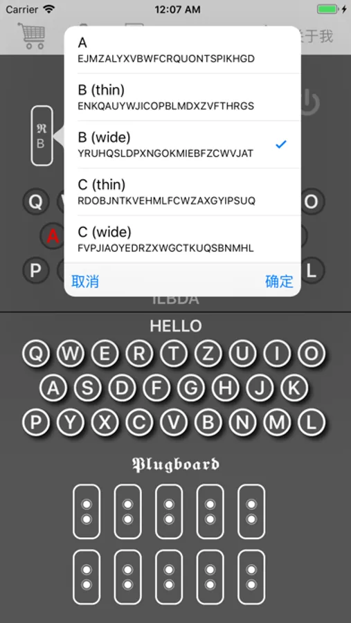 这种连线最多可以有六根(后期的“恩尼格玛”甚至达到十根连线),这样就可以使6对字母的信号两两互换,其他没有插上连线的字母则保持不变。