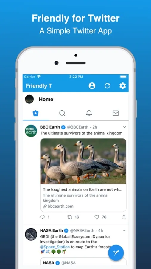 Friendly for Twitter is a fast and lite Twitter client for iOS and the Mac.