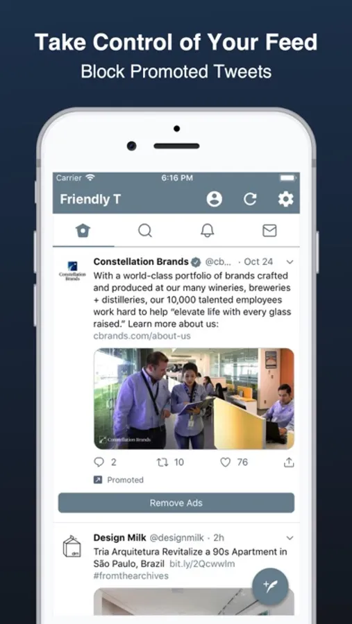 Friendly for Twitter is an alternative app and is no way sponsored, endorsed or administered by, or associated with, Twitter Inc.