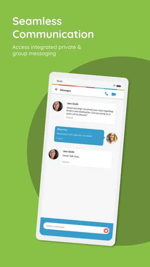 Communication: Instantly connect with team members, families & staff with integrated messaging, video calling, and push notifications.