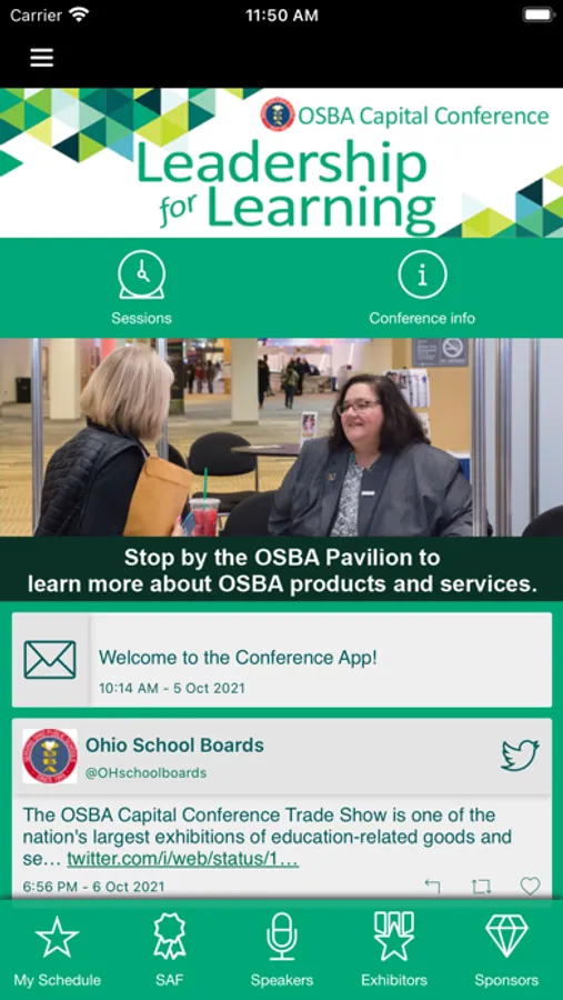 The OSBA Capital Conference App is designed to enhance your conference experience and provide valuable information and updates before, during and after the conference. The app includes the most up-to-date information on conference sessions, exhibitors, districts presenting in the OSBA Student Achievement Fair (SAF), sponsors, maps, handouts, updates and messages for attendees and more. Access handouts from all of the learning sessions. Personalize your schedule and choose the exhibitors you want to see in the Trade Show. Create an account in the app and log in to view your personalized schedule and notes on multiple devices.