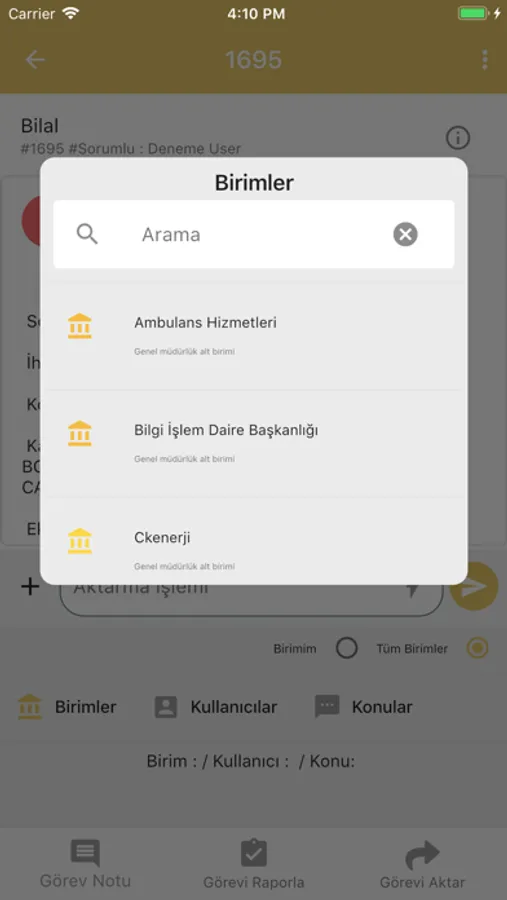 Operatör telefonu açtığında, ilgili vatandaşın tüm iletişim geçmişi ekranında.