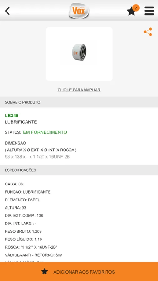 O aplicativo foi desenvolvido para consultas das aplicações de toda a linha dos produtos da Vox, tais como: Filtros de Ar, Filtros do Óleo Lubrificante, Filtros Hidráulicos, Filtros de Combustível e Filtros de Ar Condicionado.