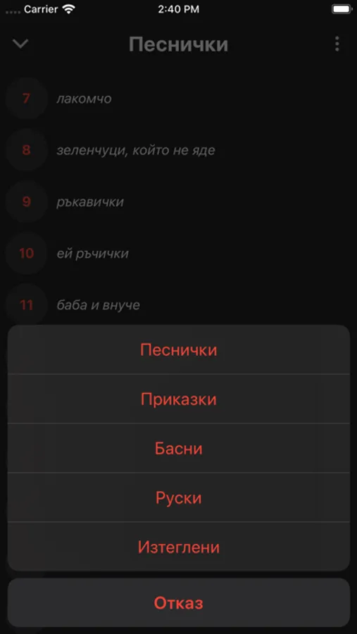 Приказки и Песнички е колекция от детски приказки, песни и истории преведени на български език в звуков формат. Повечето са дело на БАЛКАНТОН и може да ги помните от детството си. Приложението не съдържа в себе си нито един запис. Всичко се стриймва директно от интернет за това внимавайте, ако сте на ограничена тарифа мобилен интернет. Сега е добавена възможност и за офлайн възпроизвеждане (прочетете по-долу). Забавлявайте се, сещайте се за младите си години и предавайте знанията на децата си с тази невероятна колекция и продължение на часове стрийм. Когато ползвате търсачката, ако не откривате запис, проверете и ръчно в списъка, дали наистина не съществува, защото е възможно разминаване в заглавията и начина на именуване.