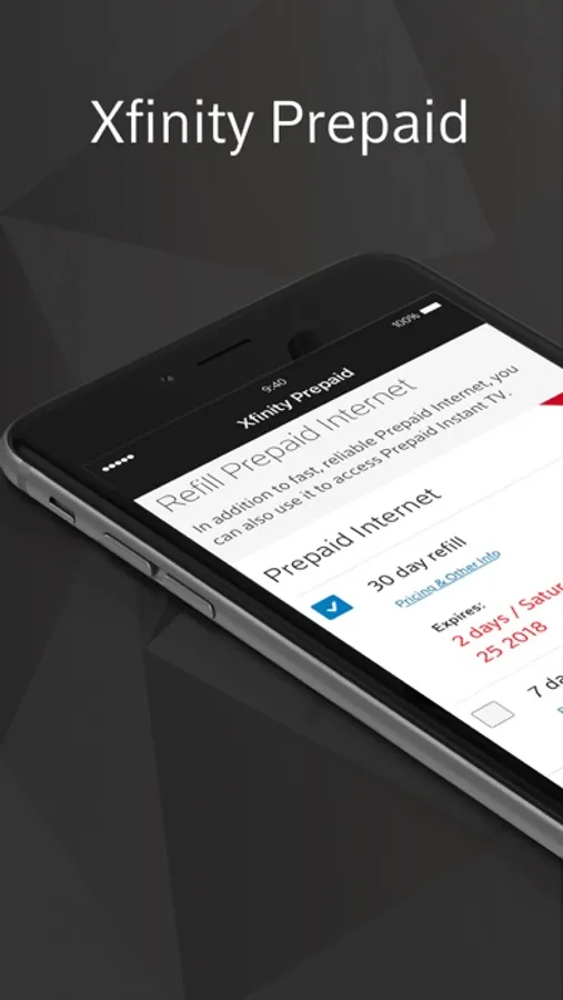 The Xfinity Prepaid App allows you to manage every aspect of your account wherever you are, whenever you need it. It’s easy to access your personal account and do things like: