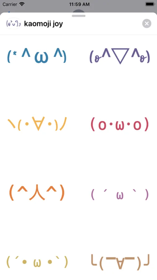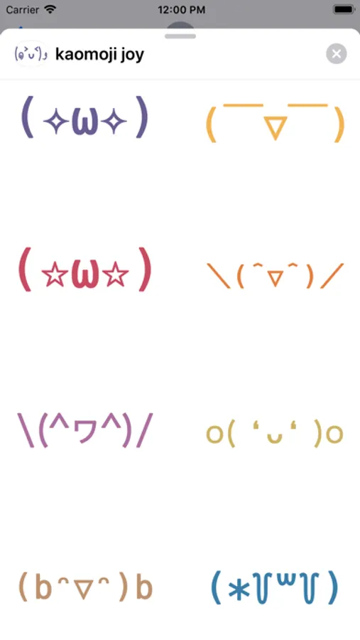 A Kaomoji is a pictorial representation of a facial expression using characters—usually punctuation marks, numbers, and letters—to express a person's feelings or mood, or as a time-saving method. Have fun!