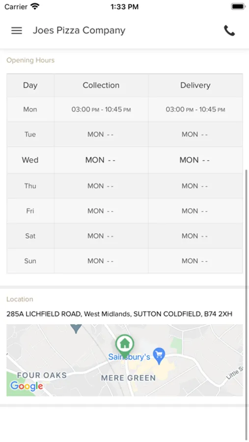 Thank you for visiting Joes Pizza Company in SUTTON COLDFIELD. We hope you enjoy our online ordering app and your food.