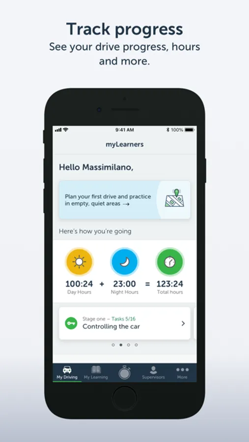 See your drive progress, hours and more.