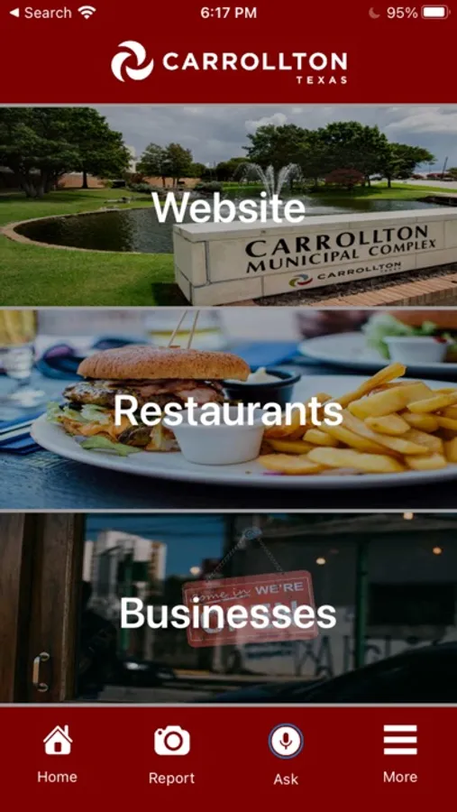 The Carrollton app is for anyone who lives in, or visits, the City of Carrollton, Texas. The app has integrated image recognition technology to enable users to report issues to the city by just snapping a picture with your smartphone and submitting it to Carrollton for review. Additionally, the app allows users to search and view specific restaurants and businesses in Carrollton and even has a way to add your very own likes to help personalize your experience. The Carrollton app will be continuously adding other city services from the city so keep it handy as we work to increase the number of features.