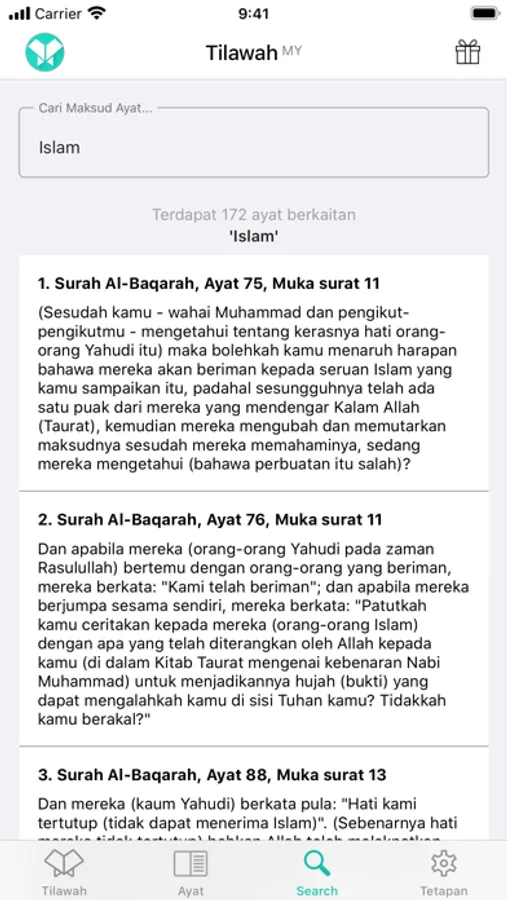Want to share a touching verse? Now you can by copying the link from this Quran app and share it on social media.