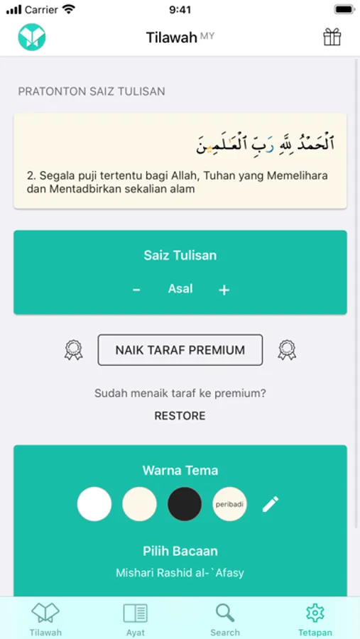 This Quran application also displays colored tajwid to facilitate recitation. This function can be opened and deleted at any time.