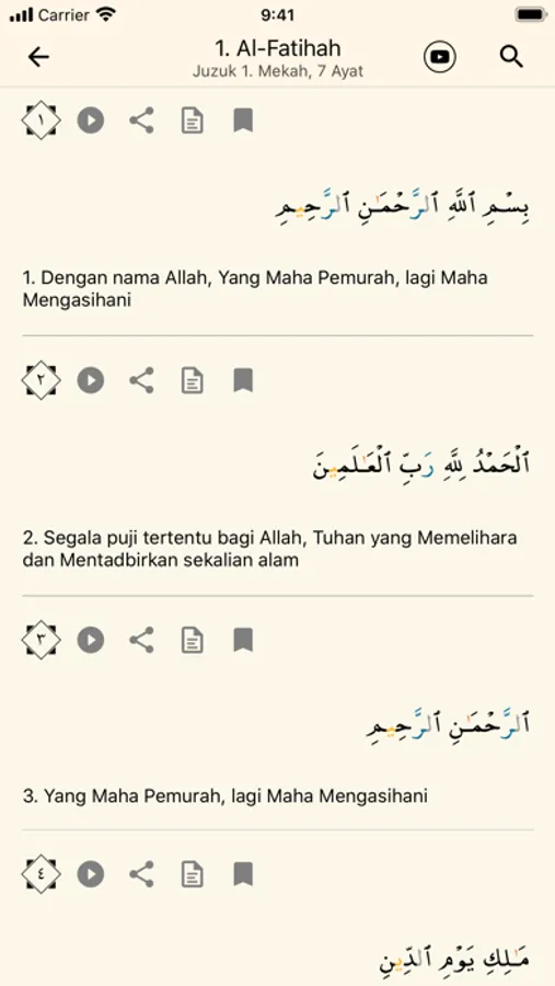 This Quran app allows you to check the recitation of the Quran with the help of audio. Tap on each word phrase to call out the audio per word, or tap on the sentence number to call out the audio of the entire sentence.