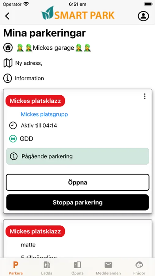 I Smartpark-appen kan du administrera din plats, ändra betalmedel samt givetvis öppna portarna till ditt garage och din plats.