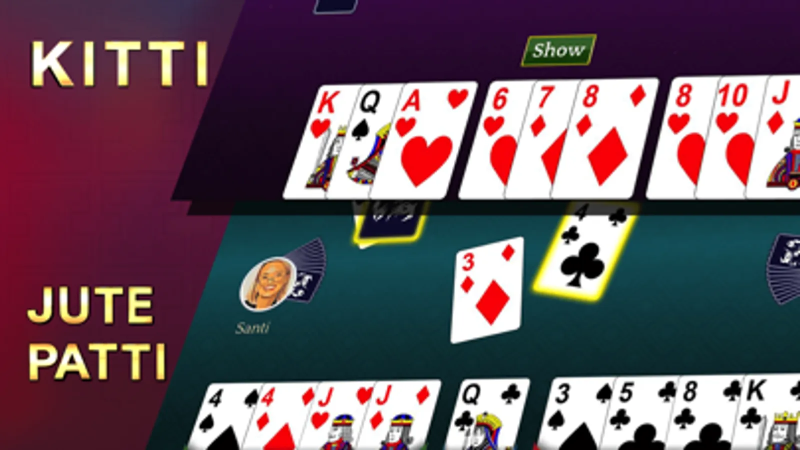 Kitti is a short, fun game played with 9 cards each between 2-5 players. In Kitti you arrange the three groups of cards, 3 in each. Just like Teen-Patti or Faras, but to win the round, you should win two shows consecutively. Unlike call break, you show three cards at a time. Once the Kitti cards are arranged in three groups of three cards each, you show one group at a time, and compare with the other players' group. If your group of cards wins, you win that one show. The Kitti game runs for three shows each round. If nobody wins the round (ie. no consecutive winning shows), we call it a Kitti, and shuffle the cards again.