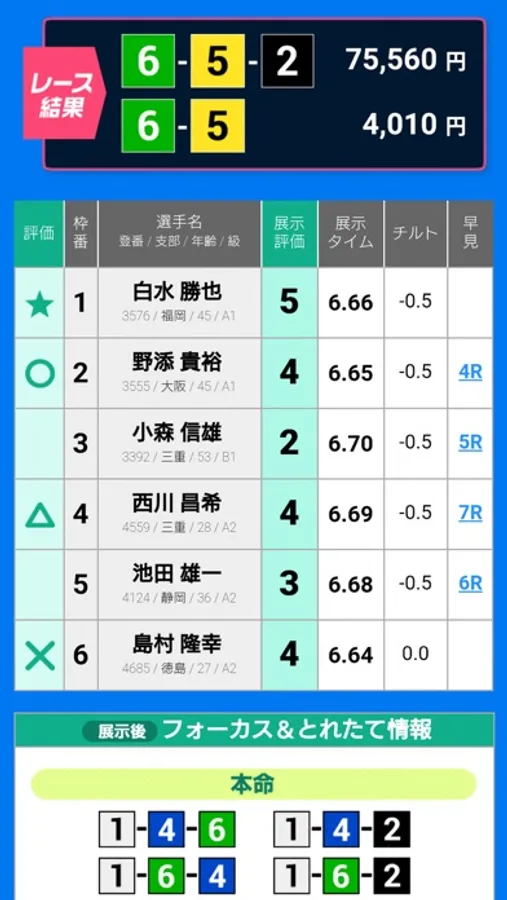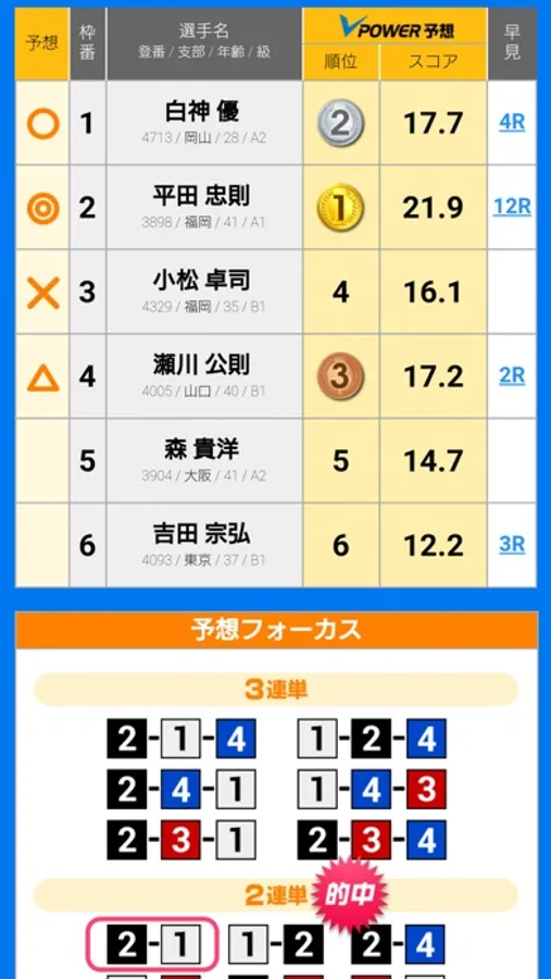レース前日にV-POWERによるデータ予想、3連単、2連単出目フォーカスがご覧いただけます。
