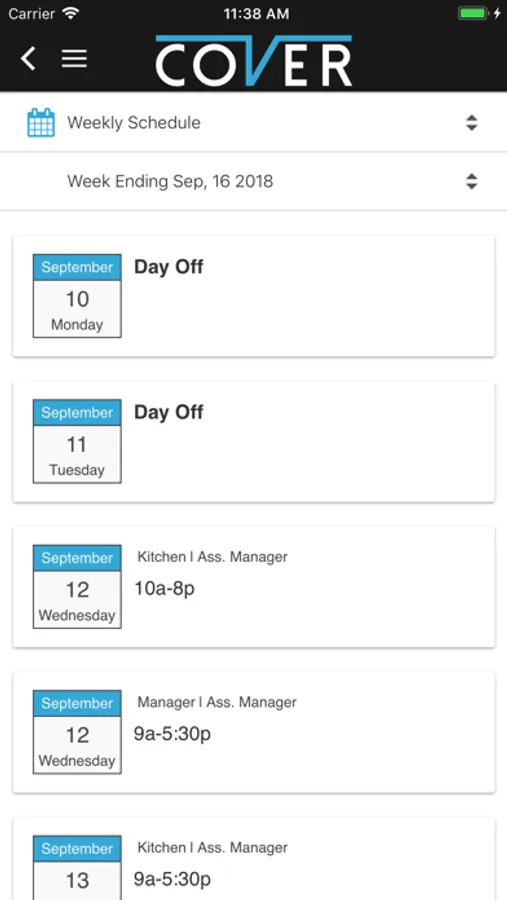 Cover makes scheduling easy for restaurant managers and employees. Create and manage schedules, trade shifts, communicate with employees and more-all in the app!