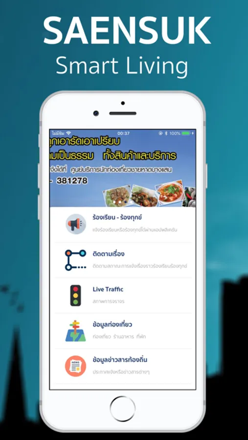 Saensuk Smart Living is a service and facilitates people to access useful information. Major tourist attractions Establishments It is located in Saensuk via Mobile Application and it enhances people's quality of life. Encourage the City of Intelligence Saensuk
