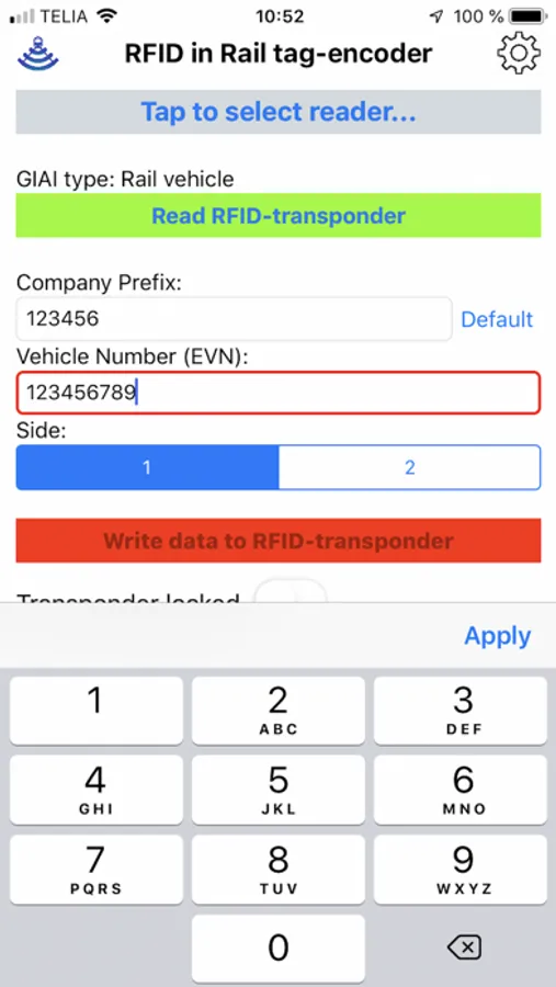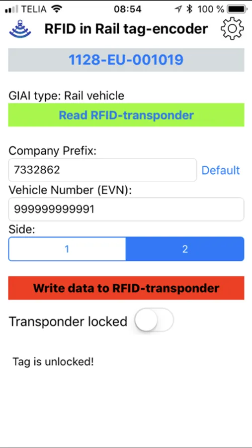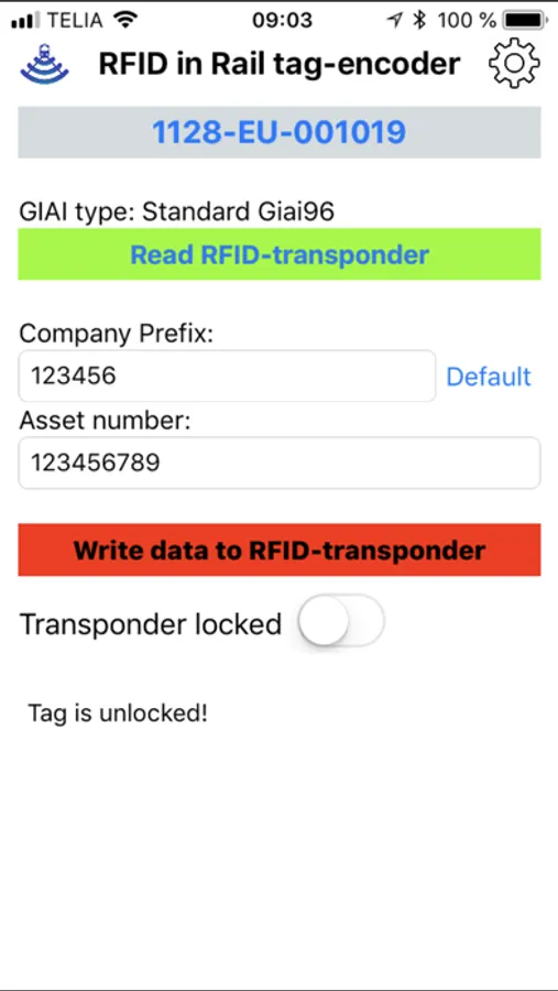 Use this app together with an TSL reader to read, write or lock your RFID-transponders