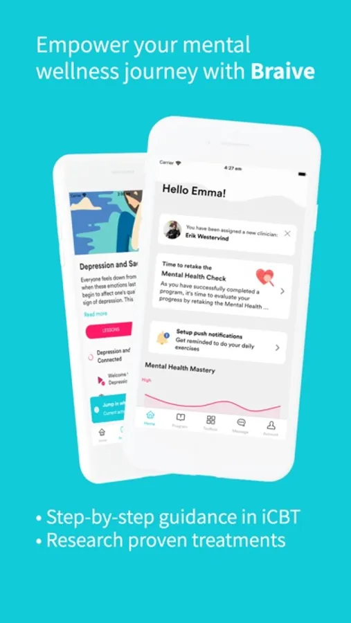 Empower your mental wellness journey with Braive. We offer practical programs and tools designed to equip you with essential skills to navigate life's challenges, including stress, anxiety, and depression.