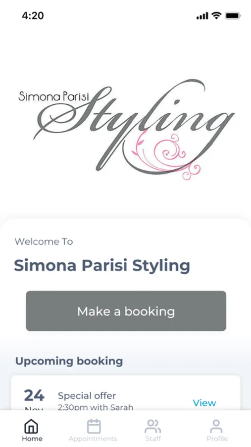 The Simona Parisi Styling app makes booking your appointments and managing your loyalty points even easier. You're just a few taps away from feeling good and looking great!
