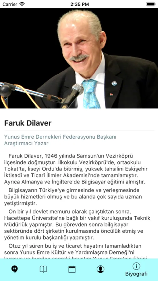 Uygulamamızda Faruk Dilaver'in özlü sözlerini, kitaplarıyla ilgili bilgileri, sesli kitap bağlantılarını, fuar ve konferans takvimini, sosyal medya hesaplarını ve kısa bir biyografisini bulabilirsiniz.
