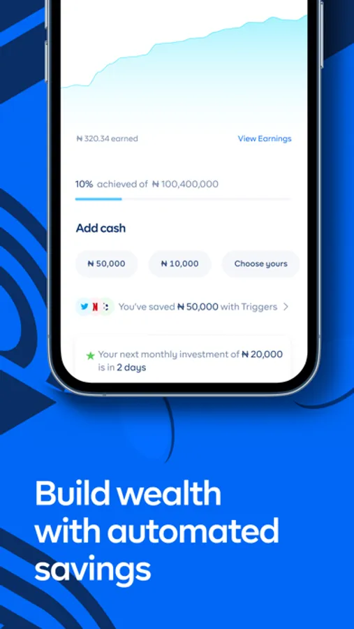 ● Start automated savings with as low as ₦1,000 per day, week, or month with our Periodic Savings Plan