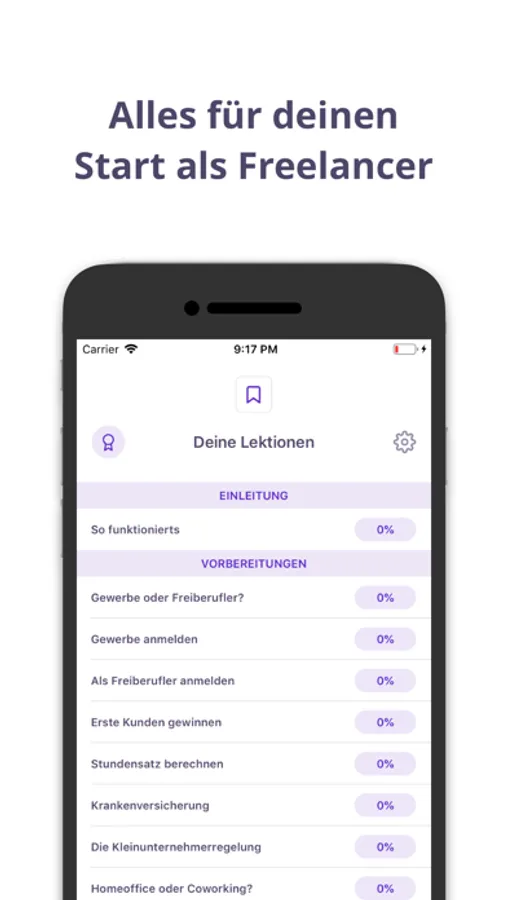 Wie melde ich meine Tätigkeit an? Wie schreibe ich eine Rechnung? Wie gewinne ich erste Kunden? - LearnFreelancing führt dich über übersichtliche Lektionen durch alle wichtigen Thematiken rund um deine Selbstständigkeit. Wir erweitern die Lektionen regelmäßig und werden zuküntig auch Themen für fortschrittene Freelancer behandeln. Das beste? Die App ist vollkommen kostenlos.