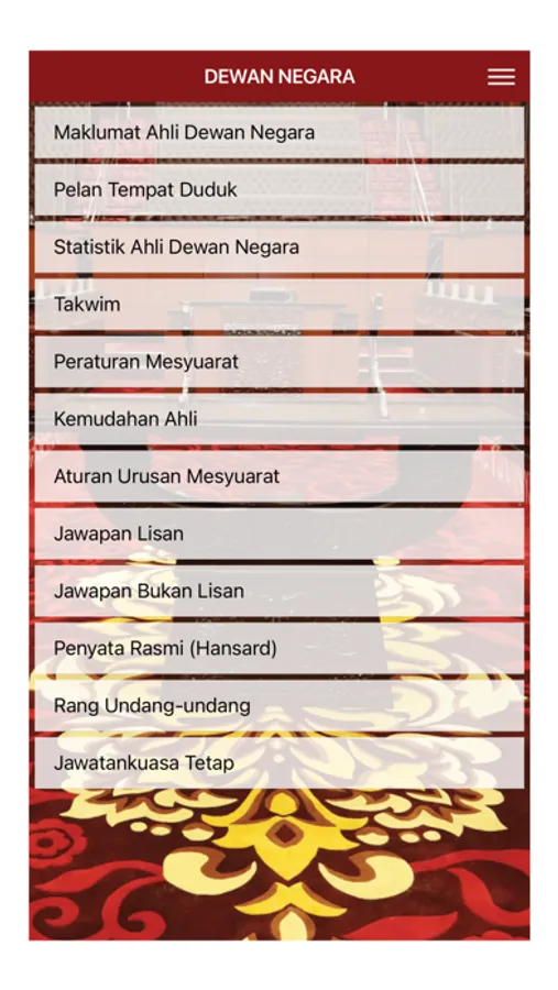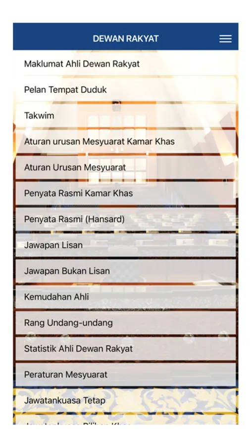 Aplikasi ini menyediakan kemudahan mengakses info mengenai Parlimen Malaysia