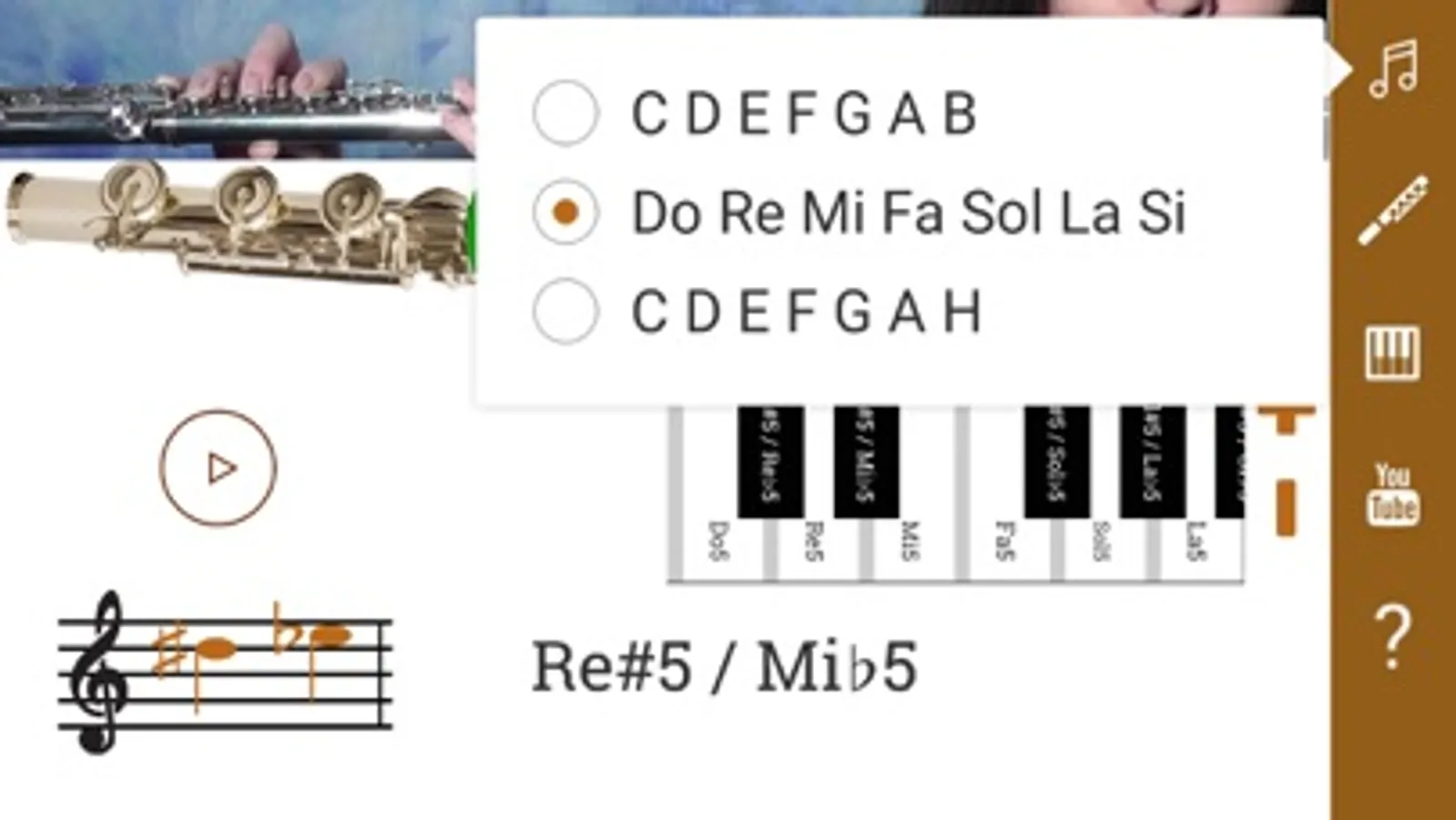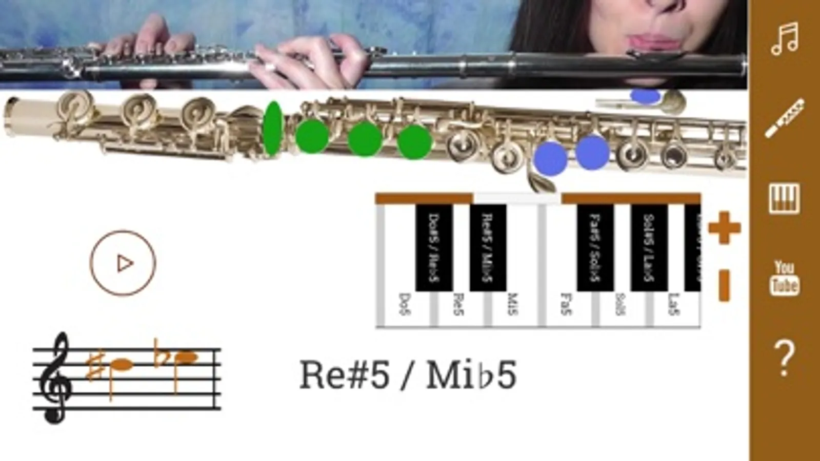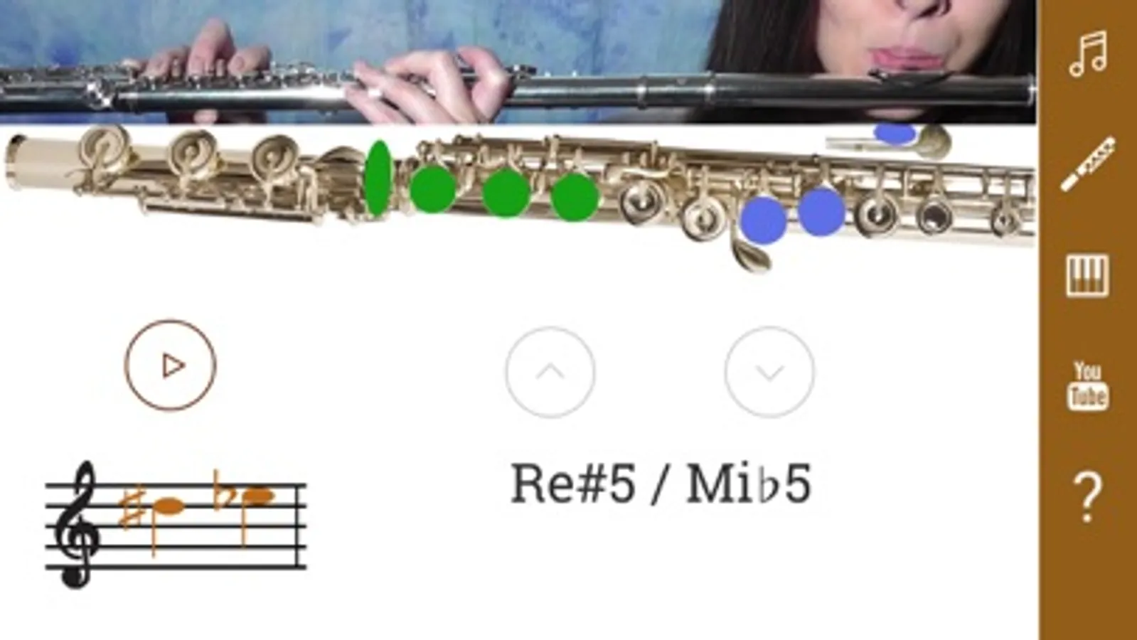 Flute Fingering Chart shows you the position of the fingers on the instrument. You can hear the sound of each musical note. There is a diagram of the finger positions and a demonstration by a live flutist, so you will learn How To Play the Flute. There is a section with flute lessons. You can choose different types of flute: piccolo, flute, alto flute, bass flute.