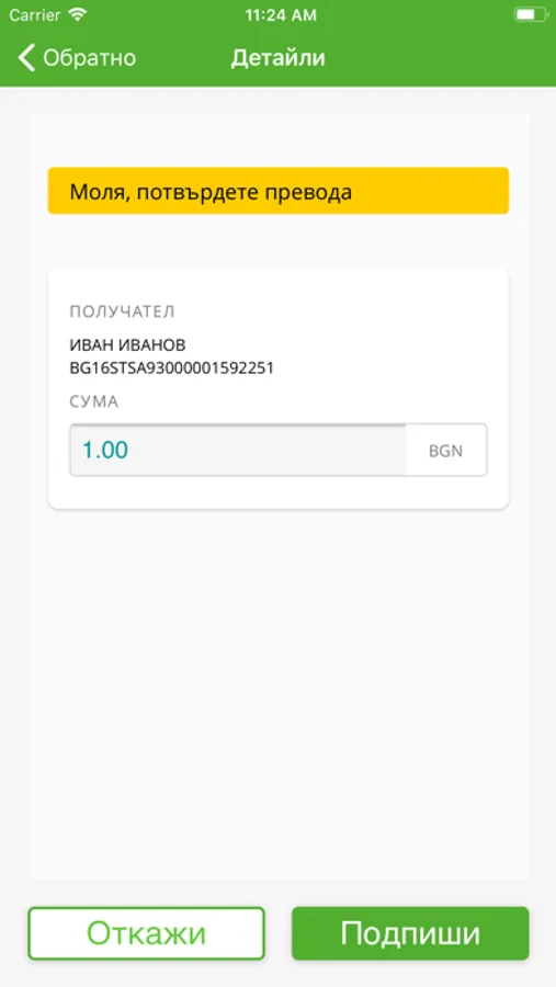 Confirmation of money transfers ordered via the internet banking DSK Direct and the mobile banking DSK Smart;