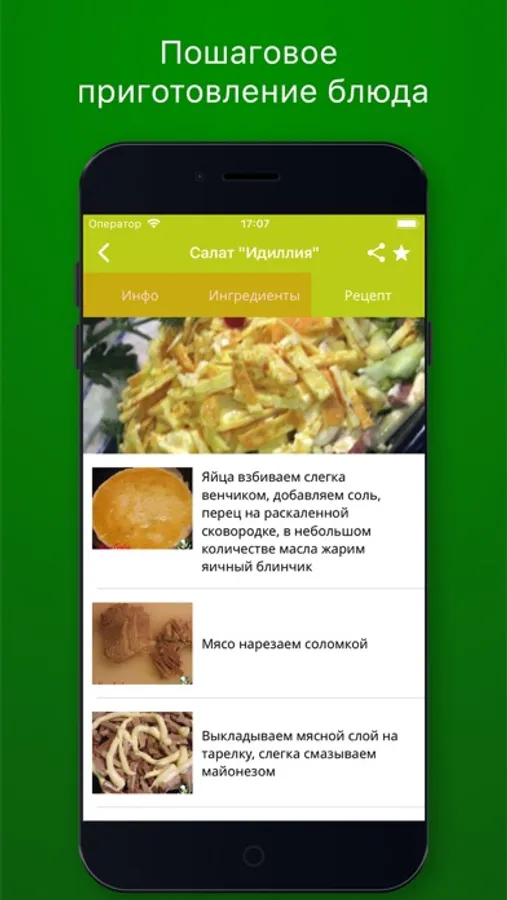 В этом приложении собраны самые интересные рецепты по разным категориям!