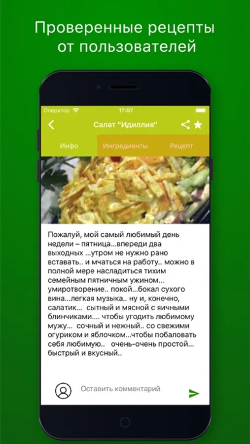 Все рецепты, которые вы можете наблюдать в приложении, написаны людьми. Все рецепты реальны в исполнении. Кроме того, вы можете прочитать мини историю о том как этот рецепт появился у автора.