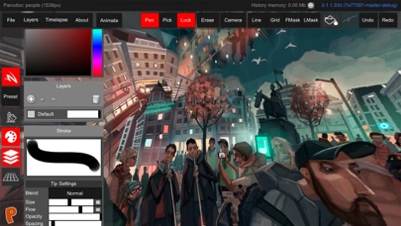 PanoPainter is the first software ever made to enable an immersive experience for artists that want to sketch, paint, and animate on a full 360° panoramic canvas.