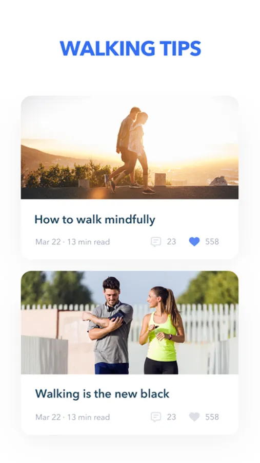 - Motivation & support. Get the best walking practices and tips hand-picked by our team and gathered in one place.