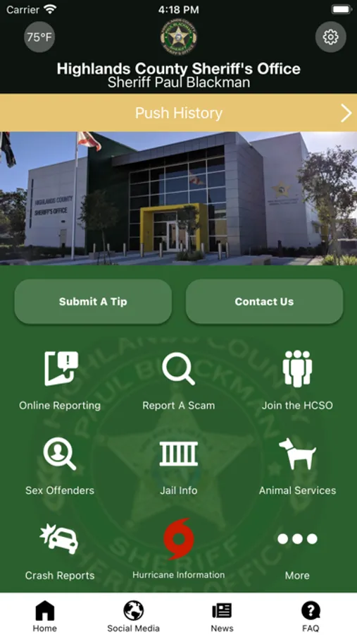 The Highlands County Sheriff’s Office mobile application is an interactive app designed to improve our communication with Highlands County residents, businesses, and visitors. Information includes sheriff's office contact information, news, emergency alerts, local weather, inmate search, sex offenders, and most wanted. Citizens may submit a tip (including photos) directly through the app, and also be connected to social media feeds. The Highlands County Sheriff’s Office will use this app to alert, inform, and engage the public as our partners in public safety of our county.