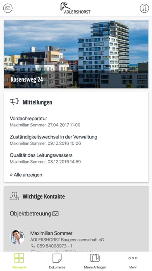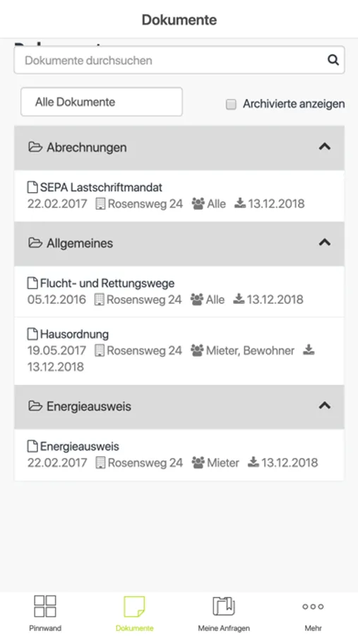 • Persönlicher Zugriff auf Dokumenten wie Objektunterlagen, Versammlungseinladungen und Protokolle