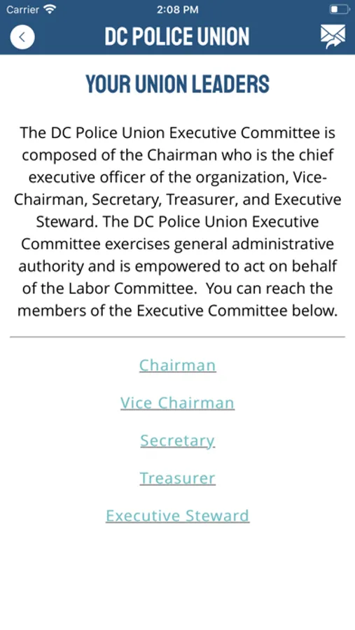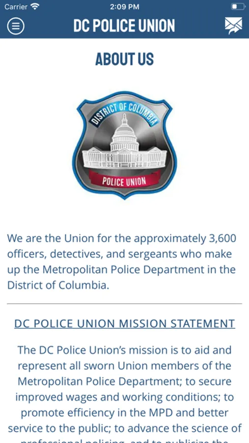 The purpose of this app is to foster better communication between the leadership of the DC Police Union (Fraternal Order of Police MPD Labor Committee), its membership and the citizen's they serve. Towards that end, this app includes a messaging system allowing users to contact union board members, contact information for union stewards, legal and insurance resources, advice of rights, important documents such as the labor contract and union bylaws, and the union's social media accounts.