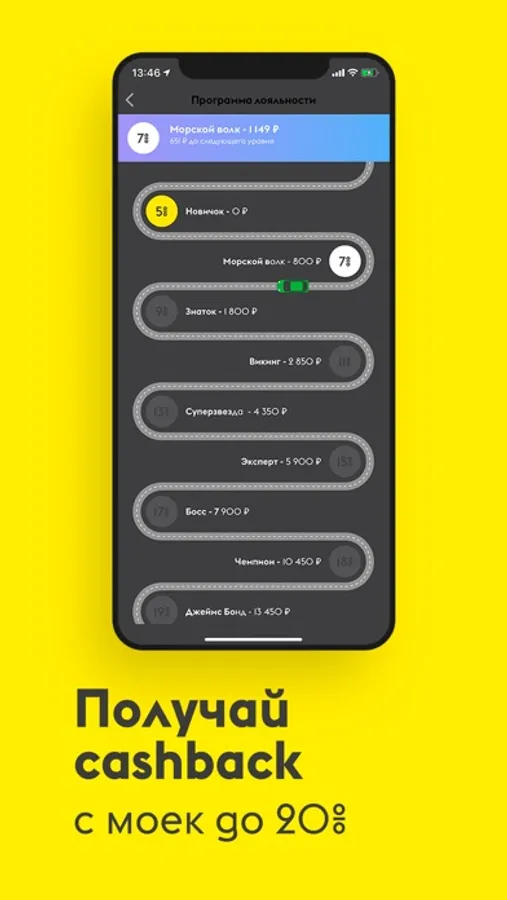Мы так же хотим дарить больше баллов, поэтому у нас существует программа лояльности, чем чаще вы совершаете мойку, тем больше становится кэшбэк с каждой мойки.