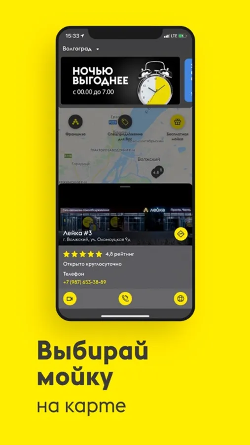 Найти ближайшую автомойку самообслуживания стало ещё проще. Просто используйте карту, и постройте маршрут прямо из приложения. Сомневаетесь в выборе МСО, откройте «карточку мойки» и ознакомьтесь с фото МСО, условиями работы, средним чеком.