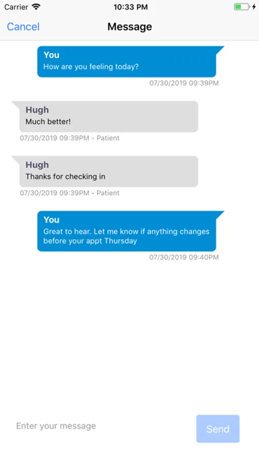 ClinicianConnect Mobile allows a clinician user on the Health Recovery Solutions platform to monitor and manage patient care directly through their phone.
