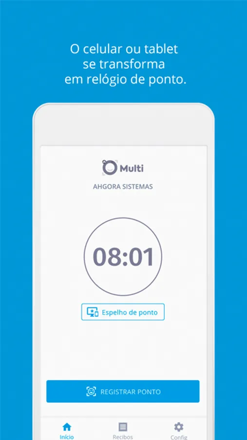Com o Multi os colaboradores da sua empresa podem registrar ponto em um Tablet ou Smartphone, substituindo o relógio de ponto tradicional.